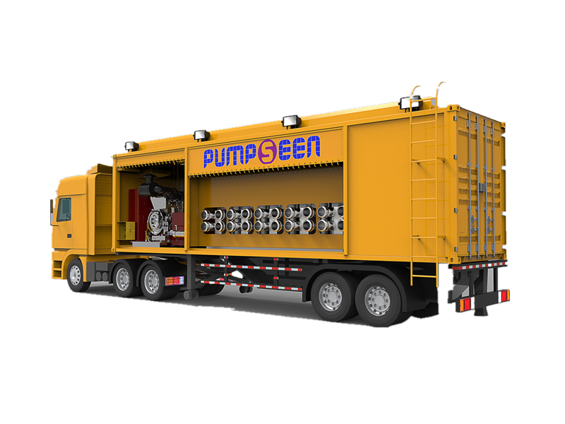集装箱式模块化分级启动超大流量泵车主要由牵引车、动力单元、输送单元、车架和集装箱等组成,配备强自吸能力、耐磨损能力的帕普生宽边转子泵,自吸能力可达9米。机组采用模块化设计,不同流量大小泵型自由拼装组合,一体化泵组配备统-驱动源,智能操控。运行时,智能模块化感应分机起动、停止,泵组系统可以在车上直接起动,也可以将集装箱吊到具体工位工作,灵活便捷。