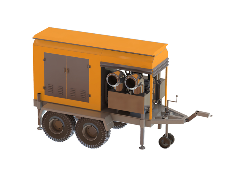 拖车式移动泵车是柴油机直接驱动新型自吸泵,配军用两轮或四轮式的拖车底盘(带刹车系统、前后伸缩式手摇支撑腿)。此类泵车具有体积小、流量大、吸程高、可靠性强、机动性强等特点。此类泵车主要适应于城区、隧道抢险及各种复杂工况,平稳性和减震的效果也是其一大亮点,主要用于防汛抗旱、应急排水等。拖车系统在动力牵引下可达到指定区域展开作业,大限度的节省装备空间,保证了设备的完整性,是经济适用的应急排水设备。