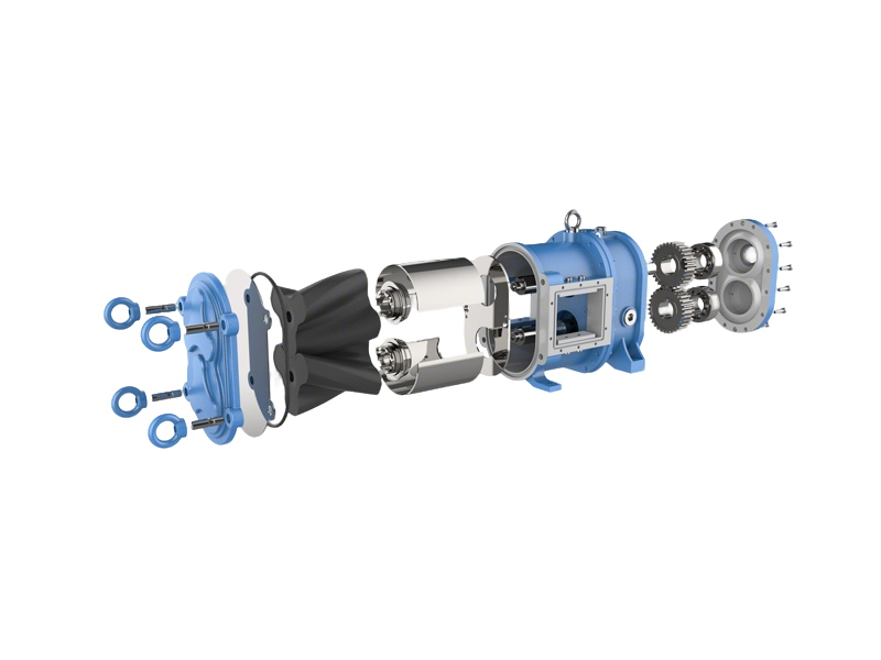 帕普生橡胶转子泵,由安装在两根平行轴上的一对转子与泵腔之间为无间隙设计,从而形成小的密封腔体,通过一对同步齿轮带动两个转子同步逆向转动,产生容积的连续位移,使得填充在腔体内的介质不断从一端推向另一端,实现流体介质的输送。转子采用橡胶、工程塑料等材质,适用于输送高含固率,高磨损,高粘度的介质,适用于多种行业介质输送。
